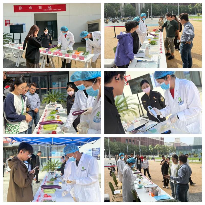 勾当现场,米面油、新颖蔬菜、同窗们现场点选本人关心的食材及餐具,并检测全过程。市场监视办理局放置专业的查验检测人员对食用油质量、餐具干净度、蔬菜农残等项目进行快速检测,检测成果全数及格。