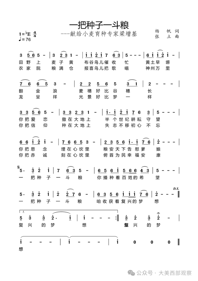 正在这首献给小麦育种专家梁增基的赞歌中,词做者以朴实而充满地盘气味的言语,建立了一幅科学家取大地、种子取人平易近、小我胡想取平易近族回复彼此交融的绚丽画卷。歌词超越了简单的人物,为对一种生命姿势的礼赞。